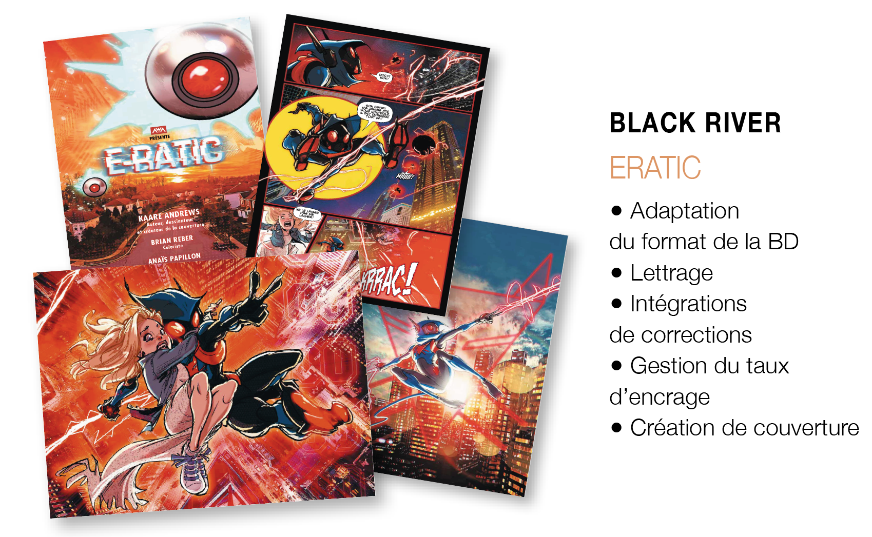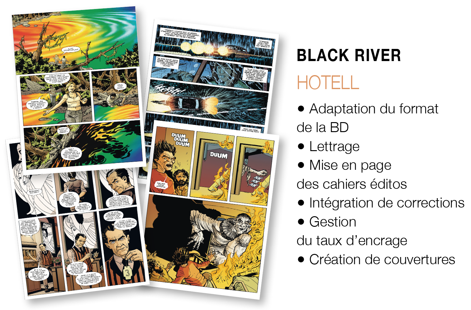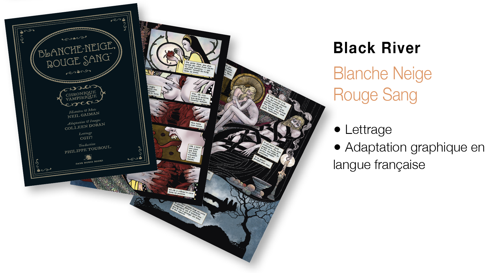 Nous réalisons le lettrage de certains ouvrages pour les éditions Black River.
